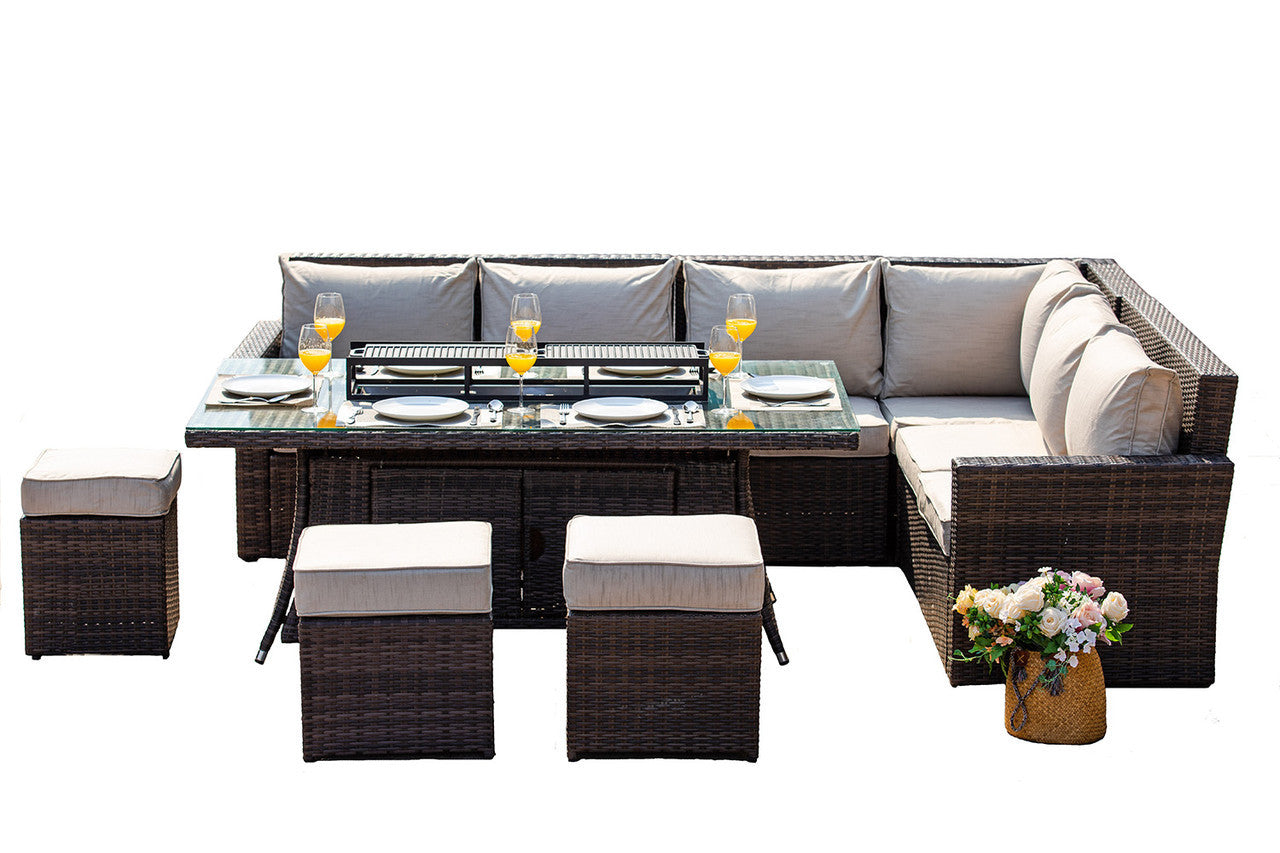 6 Seats Patio Dining Set Rectangular Dining Table with Chairs and Ottoman (PAD-3234-SET)